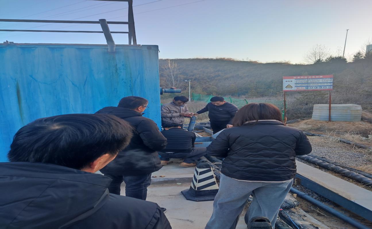 會前雙方工作人員對滲滲液處理站的設施、設備、場界范圍等相關實施進行了現(xiàn)場檢查、核實、交接?,F(xiàn)場交接完后全體人員在滲濾液處理站召開了安全會議。