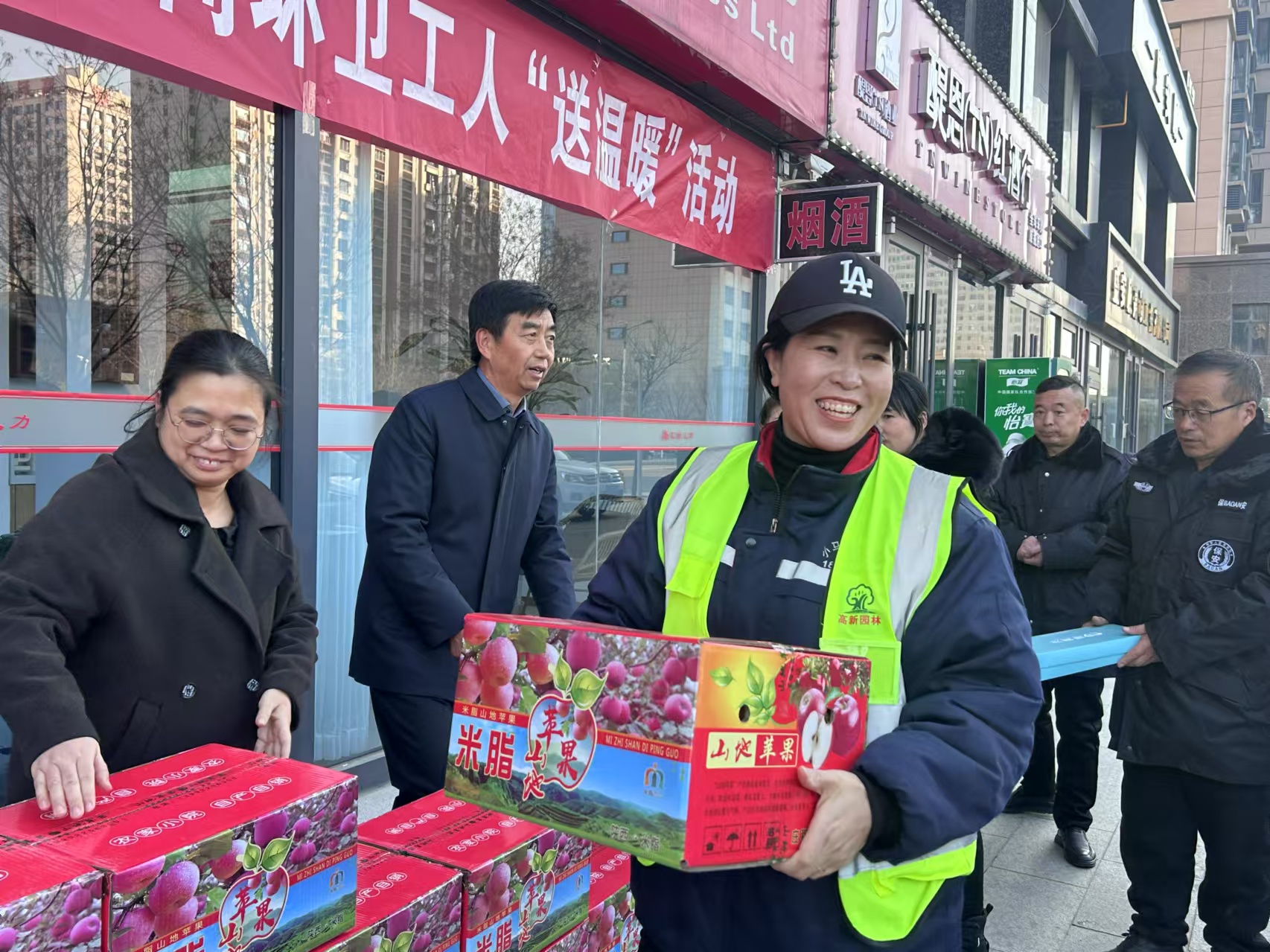 2024年12月24日下午,榆林市匯橋人力資源有限責(zé)任公司舉行向環(huán)衛(wèi)工人、保安“送溫暖”活動,為城市運(yùn)營集團(tuán)公司廣場公園92名一線環(huán)衛(wèi)工、保安贈送了蘋果、防寒服等慰問品。