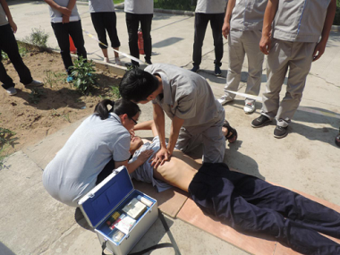 應(yīng)急救援指揮部接到報警后迅速反應(yīng),第一時間啟動相應(yīng)的安全事故應(yīng)急救援預(yù)案,總指揮向通訊聯(lián)絡(luò)組下達(dá)啟動應(yīng)急救援指令后,通訊聯(lián)絡(luò)組迅速將事故通知到各應(yīng)急救援小組,并在下樓和趕赴事故現(xiàn)場的時候邊跑邊喊,積極的爭取救援時間。事故預(yù)警信號發(fā)布后,大部分員工聽到觸電事故預(yù)警信號后都能積極的趕赴事故現(xiàn)場,應(yīng)急消防組、醫(yī)療救護(hù)組、物資保障組都以最快的速度趕赴現(xiàn)場進(jìn)行救援工作。最后,還給全體員工講解了急救常識和滅火器使用方法。
