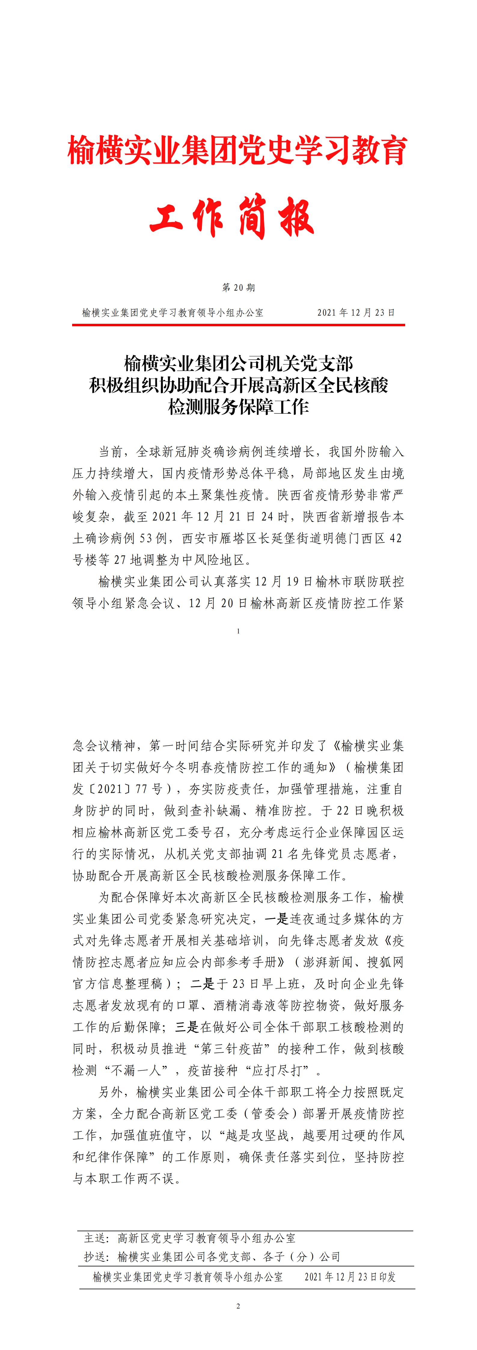- 榆橫實業(yè)集團公司機關黨支部 積極組織協(xié)助配合開展高新區(qū)全民核酸 檢測服務保障工作