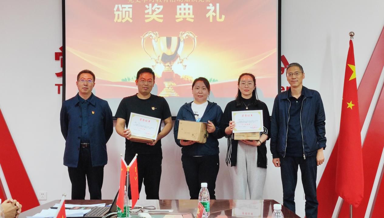 本次知識競賽內(nèi)容涵蓋黨史、新中國史、改革開放史、社會主義發(fā)展史等方面內(nèi)容,分為必答題、搶答題、風險題和附加題四個環(huán)節(jié)。在現(xiàn)場主持人、支部組織委員封春雨的引導(dǎo)下,知識競賽有序進行,各參賽隊員精神飽滿、沉穩(wěn)機智,以較為豐富的知識儲備和精彩的作答贏得了現(xiàn)場陣陣掌聲,充分展示了其黨史理論知識學(xué)習(xí)成果和奮勇爭先、團結(jié)一心、積極向上的精神風貌。最終經(jīng)過激烈角逐,隨機抽取、現(xiàn)場組合、當場取名的王者榮耀隊、海軍隊、不忘初心隊分別獲得團隊第一名、第二名和第三名,曹超、方忠艷、徐文霞榮獲個人風采獎。